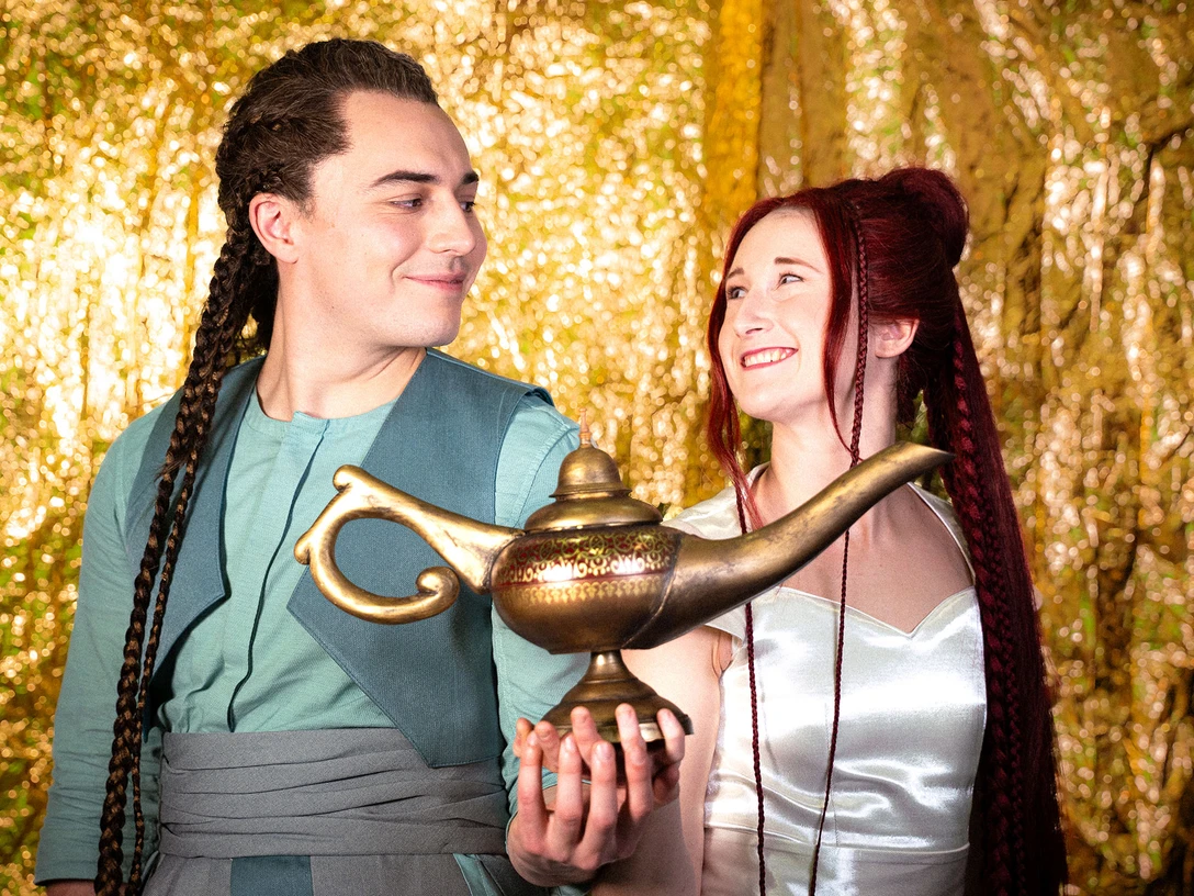 Eine gelangweilte Prinzessin auf Abwegen verliebt sich in Aladin, einen ungeschliffenen, aber ziemlich cleveren Träumer. Ein böser Zauberer strebt nach der Weltherrschaft. Der Sultan verspricht jedem, was ihm gerade passt, denn: „So ist es nun mal in der Politik“. Und der Großwesir will nichts lieber, als die Prinzessin zu heiraten und seinen Rivalen so schnell wie möglich loszuwerden. Gut, dass Aladin die Wunderlampe hat, die ihn zum Herrn über einen ziemlich großmäuligen, aber mächtigen Geist macht – doch als der Zauberer ihm die Lampe mit einem Trick abnimmt, ist nicht nur Aladins Leben in Gefahr. Peter Raffalt kombiniert in seiner Neufassung des berühmten Märchens aus „1001 Nacht“ die bekannten Motive des Stoffs mit modernen Elementen zu einem Abenteuer mit Poesie.
