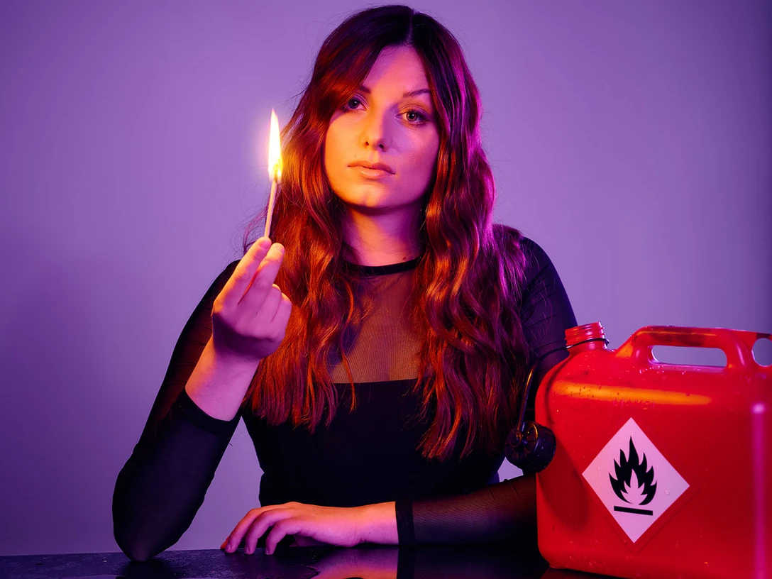 Die Gesellschaft ist zerstritten, der Döner kostet 8€ und fiese neue Mücken pieksen jetzt noch pieksiger. Die Welt versinkt im Chaos und selbst Ordnungsqueen Marie Kondo räumt nicht mehr auf. Das Einzige, was uns jetzt noch retten kann, sind ein großer Bottich Eis und die romantische Kaminfeuer-DVD. Lara Ermer macht sich’s trotzdem nicht zu gemütlich und rechnet ab – im Zweifel mit sich selbst. Mit einer guten Prise Charme bewaffnet widmet sie sich den wichtigen Fragen des Lebens, ohne sich daran die Finger zu verbrennen. Warum zur Hölle werden wir in gesellschaftlichen Diskussionen so verschissen schnell ausfallend? Wenn ich auf jeden Fall recht habe – was hast dann du? Und wer schwitzt mehr beim Sommerpicknick: Ich oder der Käse? Hinter dem Programm stehen wasserfeste Recherchen, die Tiefen des Internets und ein abgeschlossenes Psychologiestudium. Ernstzunehmender wird Comedy nicht. In Leicht entflammbar genießt die Comedienne das Spiel mit dem Feuer: Mal liefert sie unterhaltsamen Krawall, mal ein feines Knistern, an dem das Publikum sich wärmen kann. Also besorgt schon mal die Marshmallows, an Lara Ermers Lagerfeuer ist Platz für alle – aber wehe einer packt die Klampfe aus und fängt an Wonderwall zu singen!
