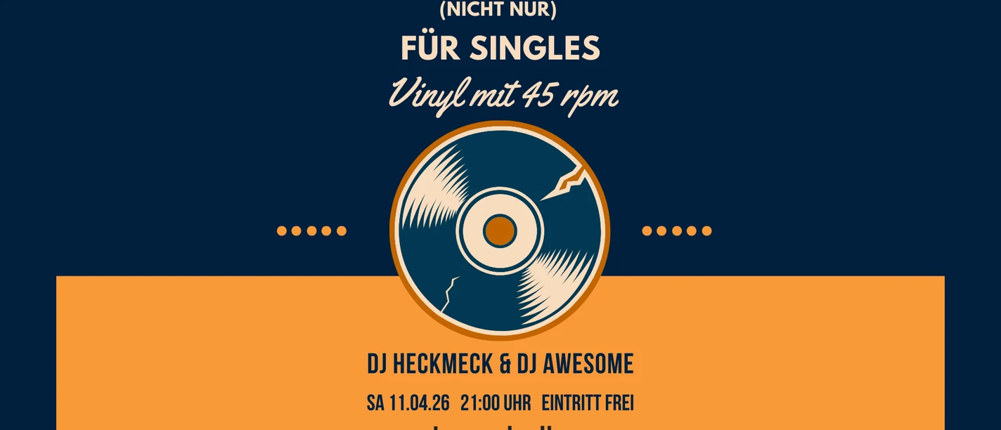Alle kennen sie, alle lieben sie, auch heute wieder: Vinyl-Schallplatten. Eine besondere Form war und ist die legendäre Single. DJ Heckmeck und DJ AWeSome haben wieder in ihren Plattenschränken gegraben und bringen feinste Musik aus den wilden 70ern, den tanzfreudigen 80ern und Singles aus den Anfängen der 90er mit. Singles zum Tanzen und Verlieben – nicht nur für Singles!