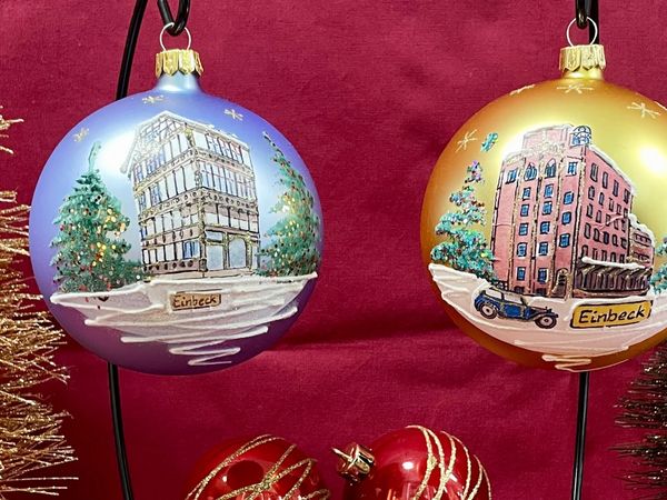 Ab sofort bietet die Tourist-Information Einbeck die neue Weihnachtskugel mit Einbeck-Motiv für das Jahr 2025 an. Die mundgeblasene Kugel mit einem Durchmesser von 10 cm ist Teil einer Sammelreihe mit jährlich wechselnden Motiven und wird in Handarbeit dekoriert.